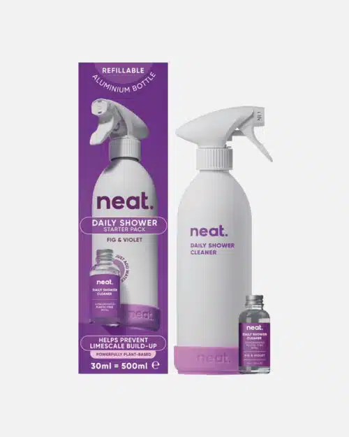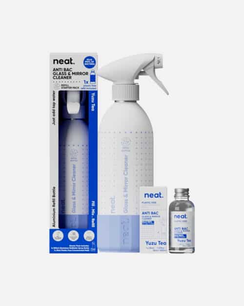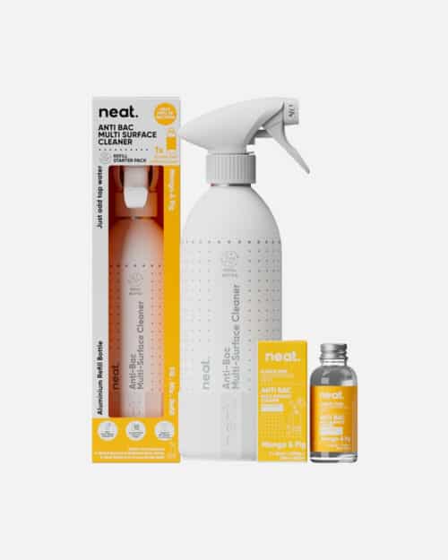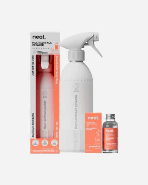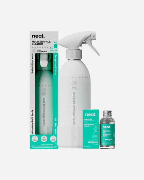 neat. er en engelsk virksomhed, som ønsker at gøre op med al den unødige transport af vand i verden. Når vi køber færdige rengøringsprodukter som er klar til brug, er de blandet med op til 90% vand og kommer i plastikemballage, som ofte ikke kan genanvendes. Derfor har neat. fremstillet et koncentreret miljøvenligt rengøringsmiddel som kommer i små glasflasker, som lige er til at blande op med vand derhjemme.