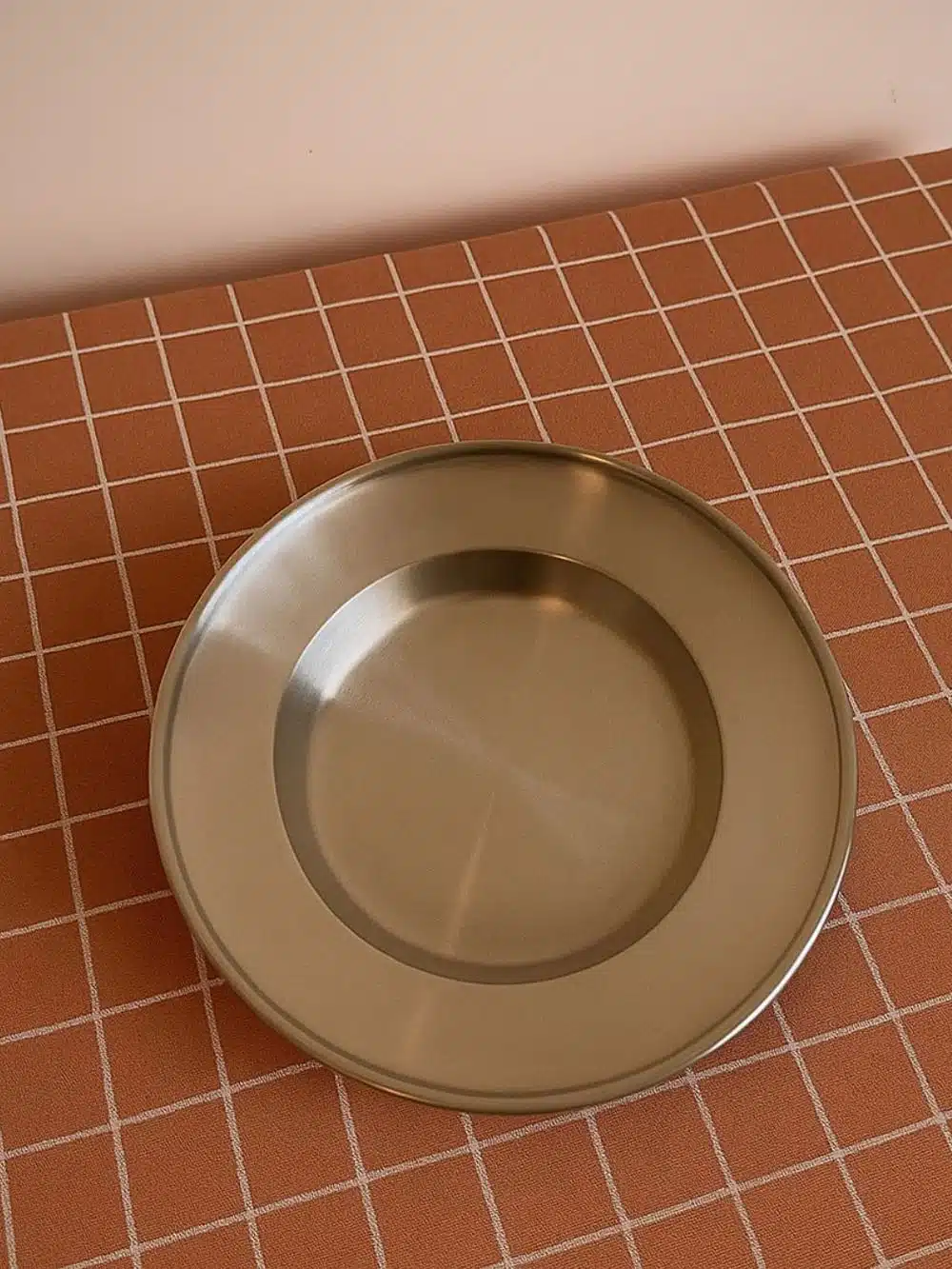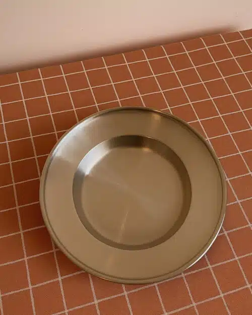 Den dybe tallerken i stål tåler opvaskemaskine – ikke mikroovn.