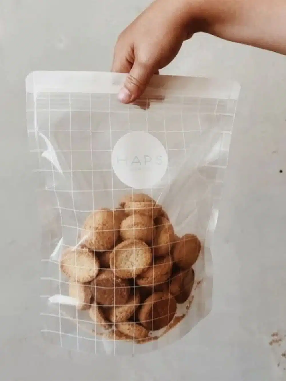 3-pack Haps Nordic snackbag egner sig godt som frugtpose til børnenes formiddags- eller eftermiddagsmåltid i skolen eller fritidsordningen. Posen lukker tæt med en stærk lynlås i toppen, så den ikke lækker.