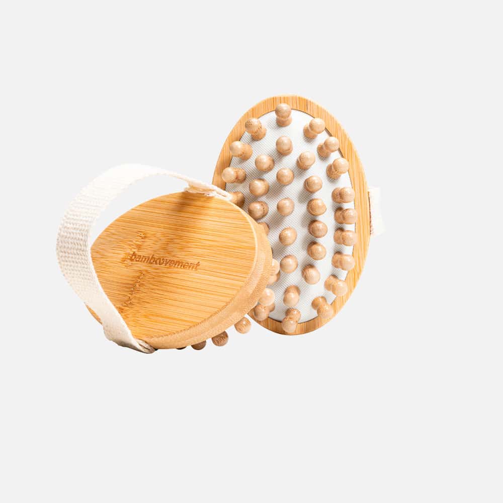 Massagebørsten er fremstillet af FSC 100% bambus og naturlige materialer, er fuldstændig plastikfri og vegansk.